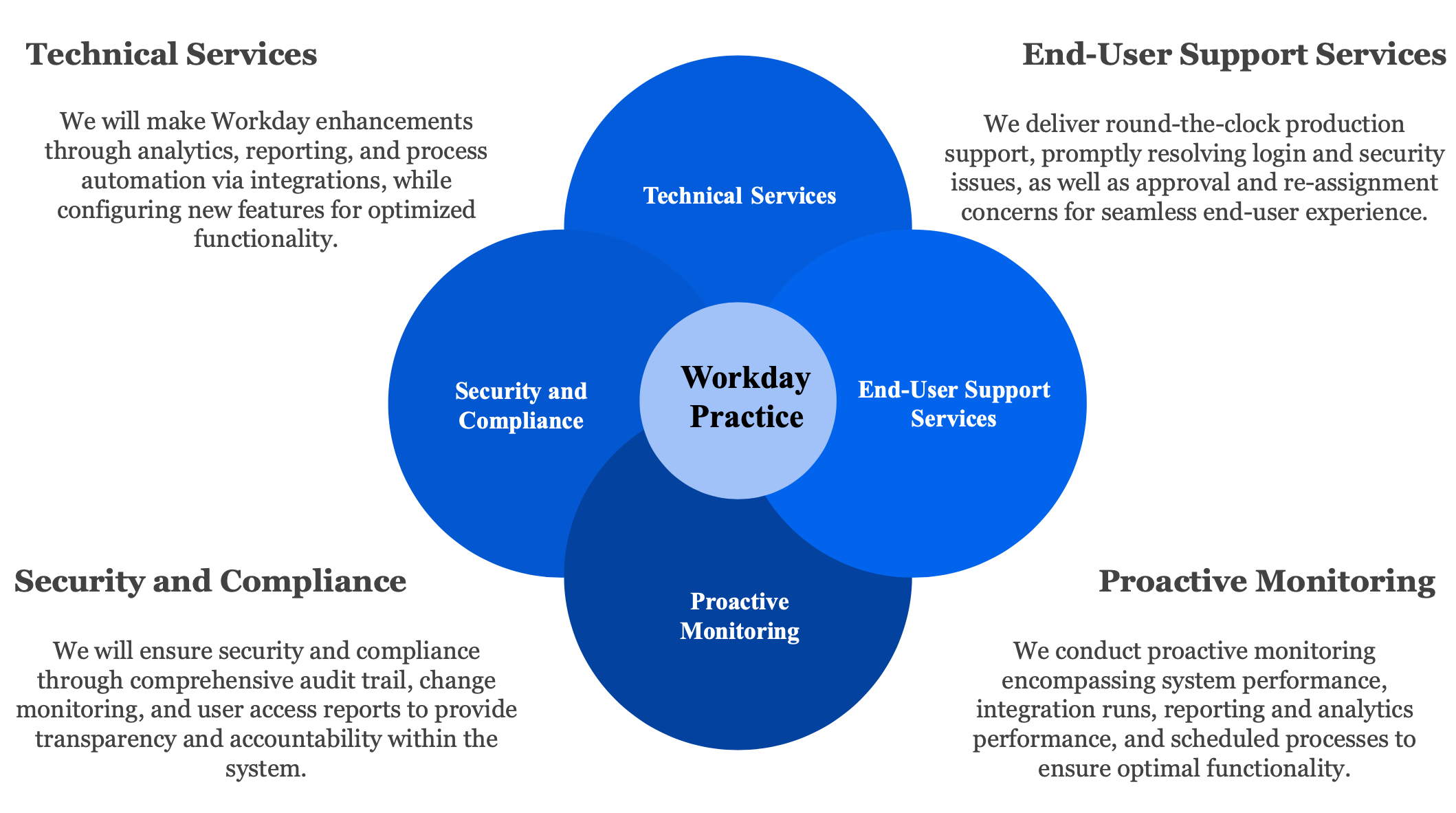 We also help the customers with Workday's bi-annual releases by regression testing of existing process and performing impact analysis of the new features. Eventually, help customer adopt new features.